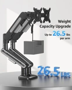 <Upgraded Monitor Arm>Cable management conceals wires within the arm. Getting your monitors off your desktop will provide you with extra room for your favorite desk decor. You’ll have a neater workspace and your day will be more productive without a bunch of wires hanging from your screens.