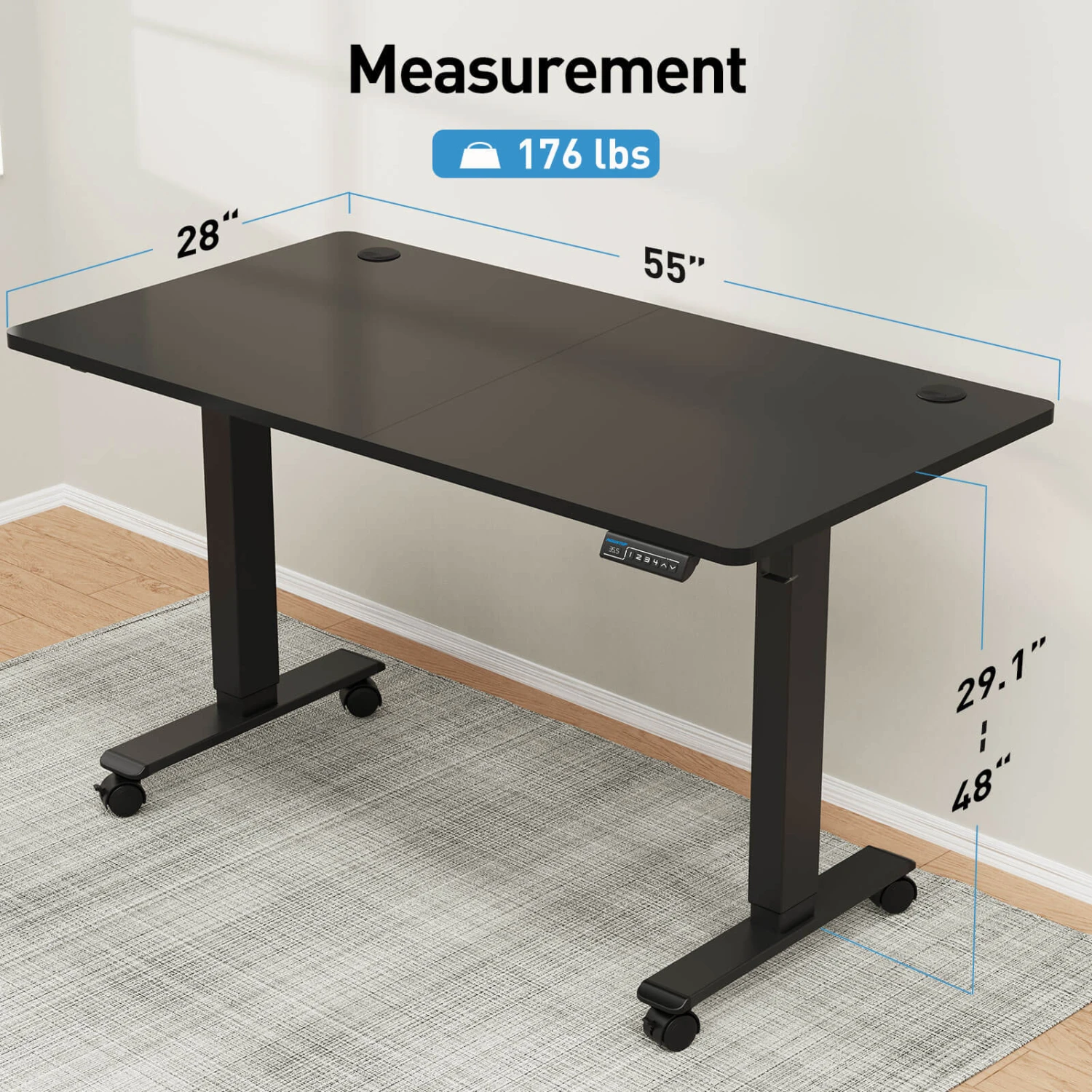 <Durable QuietΒ Motor>The sturdy steel frame and wood desktop of adjustable desk allow 176lbs weight capacity. It offers stableness and sturdiness in use. T-shaped bases maintain good stability even when used at the highest height.