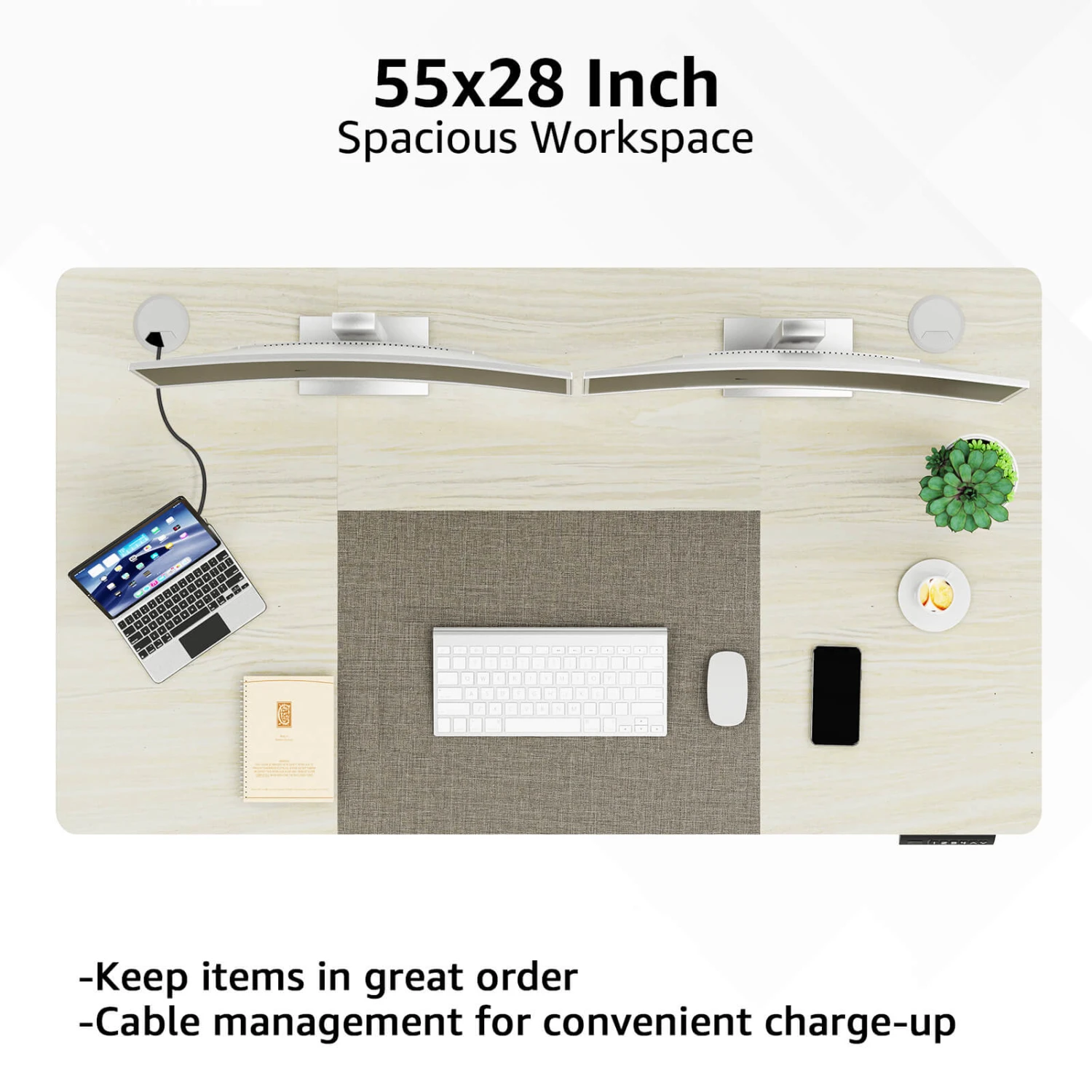 <Spacious Work Area>Large 55 x 28″ eco-friendly desktop offers ample workspace for 2 monitors and laptop setups along with important work materials, supplies, and decor. It provides more space and comfort for your busy working hours.