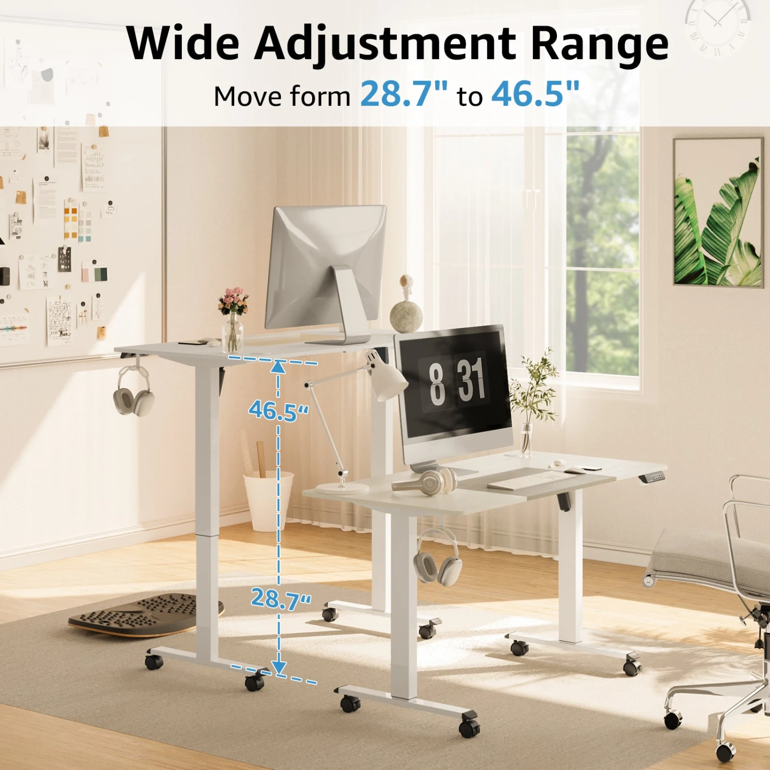 <Solid Construction>The sturdy steel frame and wood desktop of adjustable desk allow 154lbs weight capacity. Monitors, books and other supplies will be held securely on the sit to stand desk without any issues.