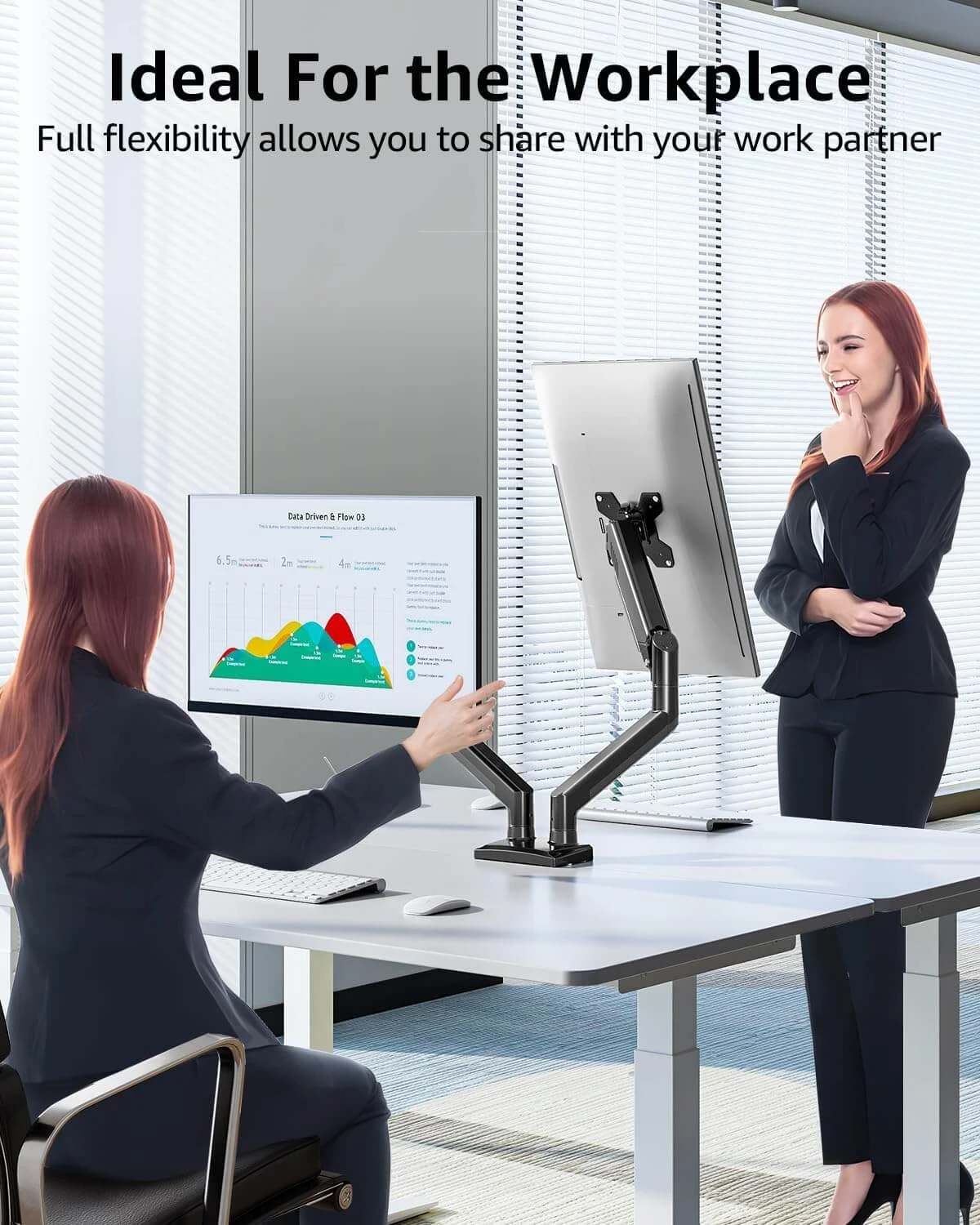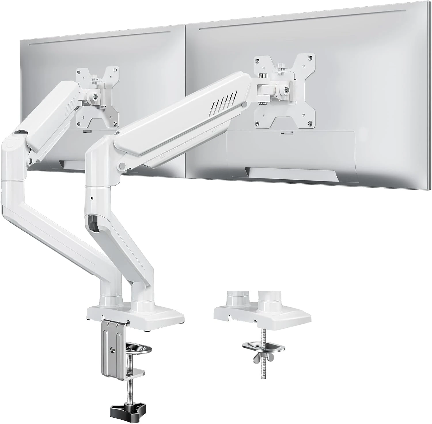 <Maximize Your Desktop Space>The dual monitor mount with cable management concealed wires within arms and frees up more space on your desktop. Just enjoy your working, gaming, or entertaining in a more comfortable environment.