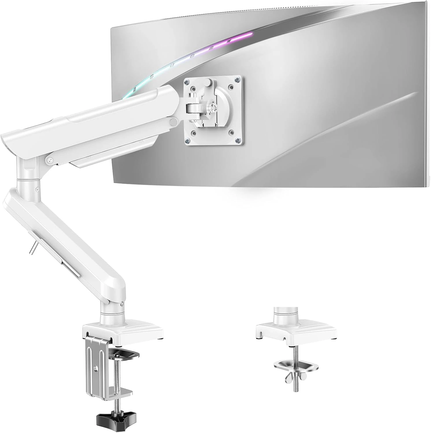 <Gas Spring Arms Save More Space>The single monitor mount with a gas spring system tested 20,000 times to ensure long-lasting performance for your workspace. Also, the integrated cable management concealed wires within arms and keeps your wires organized. Save over 80% of your desk space for a more tidy and comfortable working, gaming, or entertaining environment.
