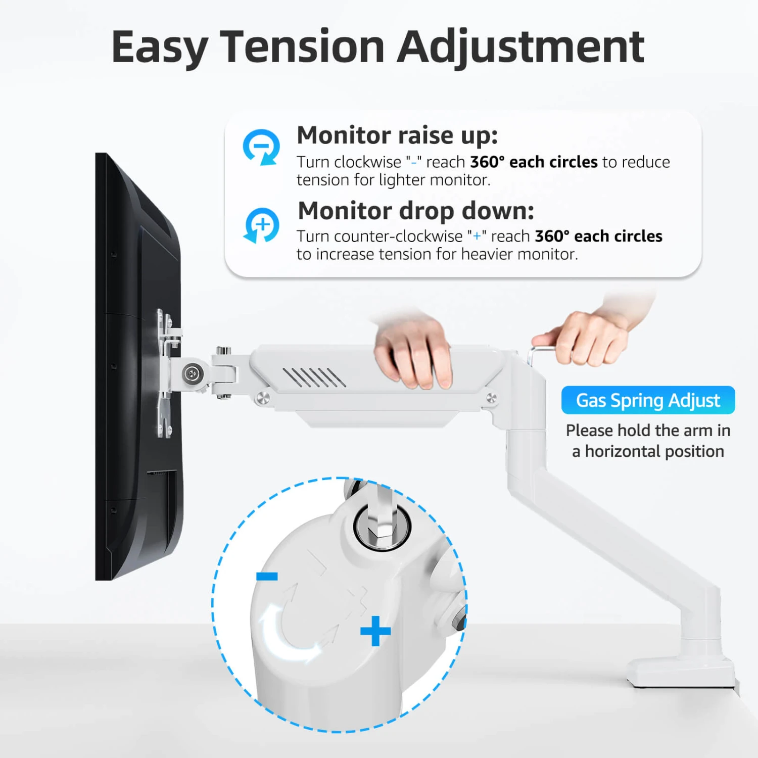 <Gas Spring Adjustment for Smooth Operation>The single monitor mount features a built-in gas spring system, allowing effortless adjustment based on the weight of your monitor. Whether you’re repositioning the screen for a better angle or switching between tasks, the gas spring ensures smooth and stable motion for your display, creating a better user experience.