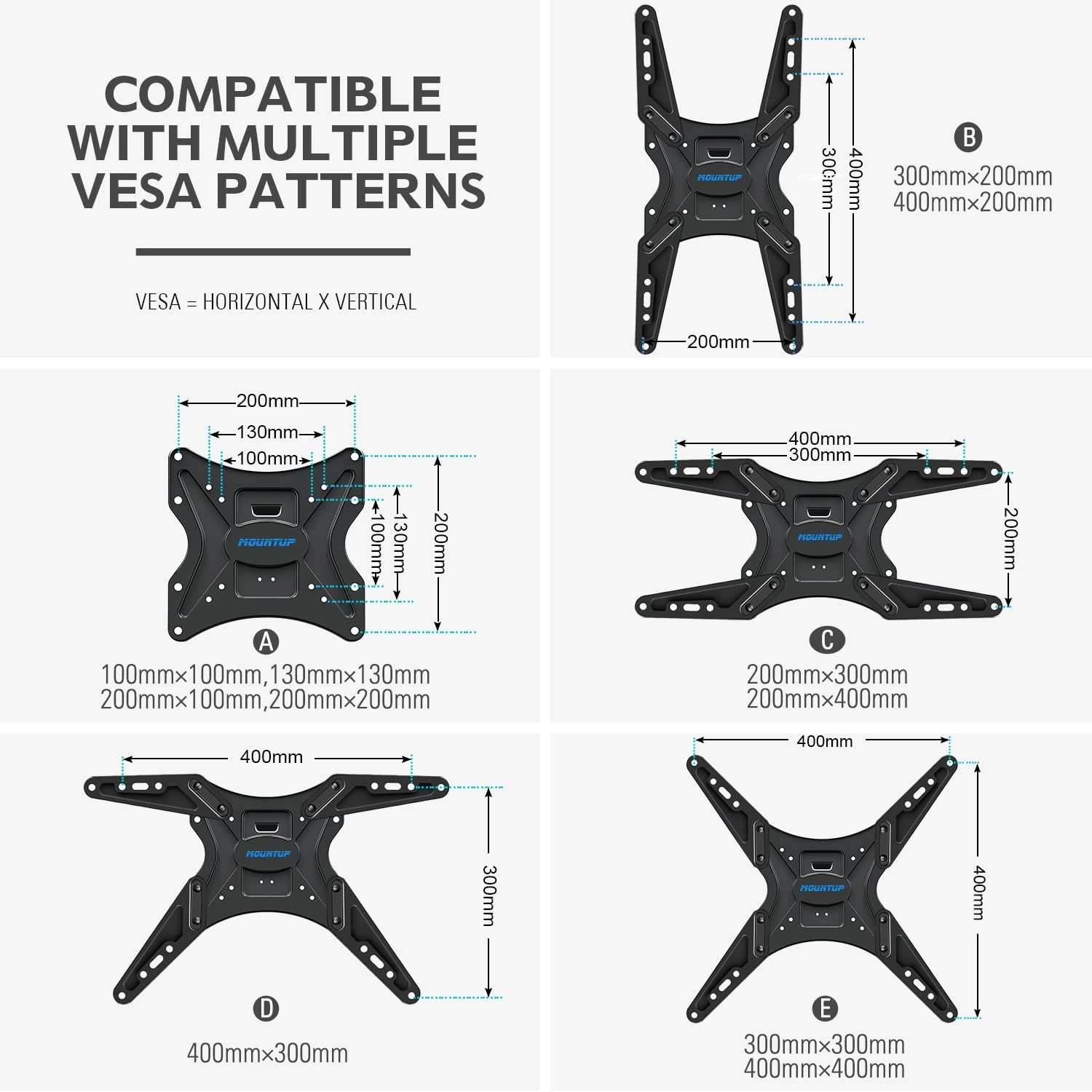 <Universal TV Wall Mount>Our articulating TV mount fits most 26″- 55″ LED LCD OLED TVs with VESA patterns ranging from 100x100mm to 400x400mm and holds up to 88 lbs. It is widely compatible with TV brands such as Samsung, Sony, Panasonic, Thomson, Toshiba, Sharp, LG, Philips, JVC, etc. Designed for single stud, brick, and concrete walls, not for drywall alone application.