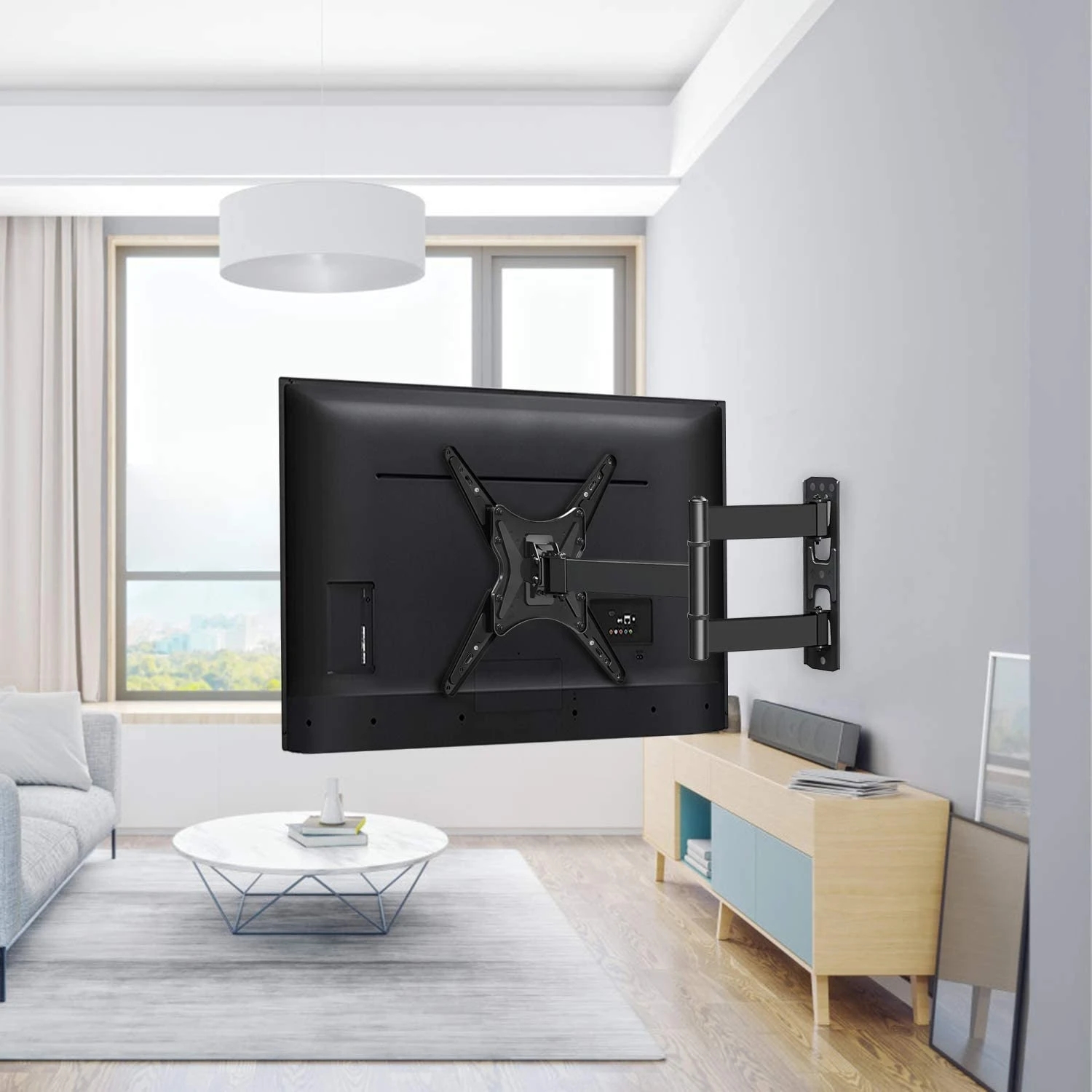 <Full Motion for Optimal Viewing>The articulating TV wall mount bracket allows +/-90°swivel left or right to provide full-motion adjustment for ideal viewing. (note: max swivel angle depends on screen size) , +5°/-15° for anti-glaring, +/-3° post-installation adjustment for perfect TV leveling, and 2.5″ to 18.9″ wall distance adjustment for flexible movement and space savings.