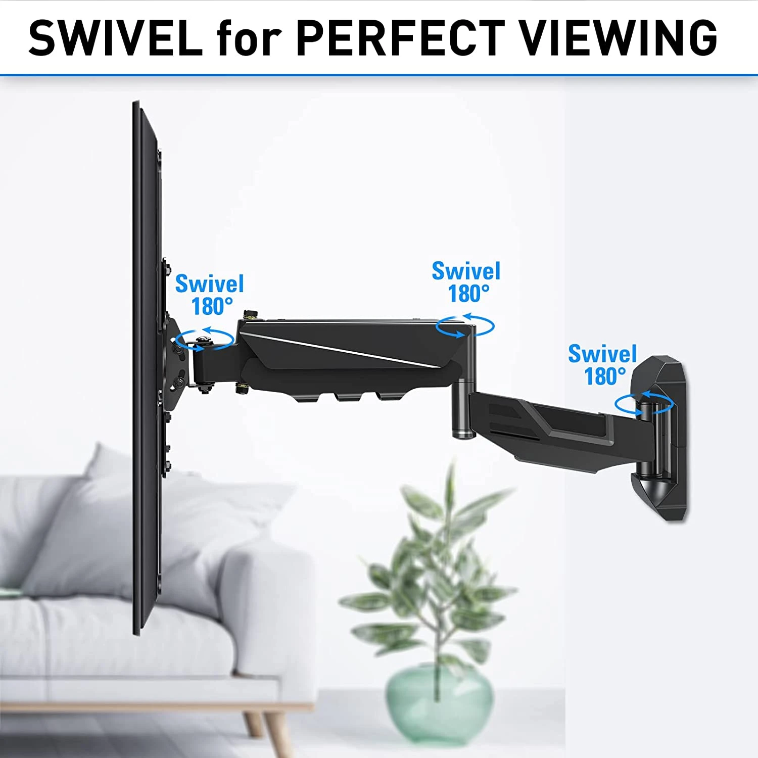 <Sturdy & Durable>Constructed with heavy-duty aluminum and steel, this full motion TV mount has been strength tested based on UL standards ensure to hold the TV securely and steadily backed with 3-Year protection.
