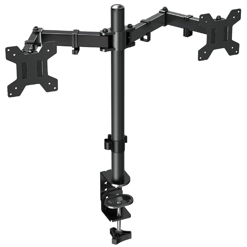 <Universal Compatibility>The dual monitor mount is designed for most computer monitor displays up to 32” and LCD LED flat or curved screens with VESA pattern of 75x75mm or 100x100mm, each arm supports weight up to 19.8lbs. Fit most tables with a thickness of 0.39”-1.97” or a hole diameter of 0.39″-2.36″. The wider C-clamp is available on request ,which fits up to 3.34″ in thickness. It is compatible with most monitor brands, including Samsung, LG, ASUS, Acer, AOC, Dell, HP, Gigabyte, ViewSonic, BenQ, etc.