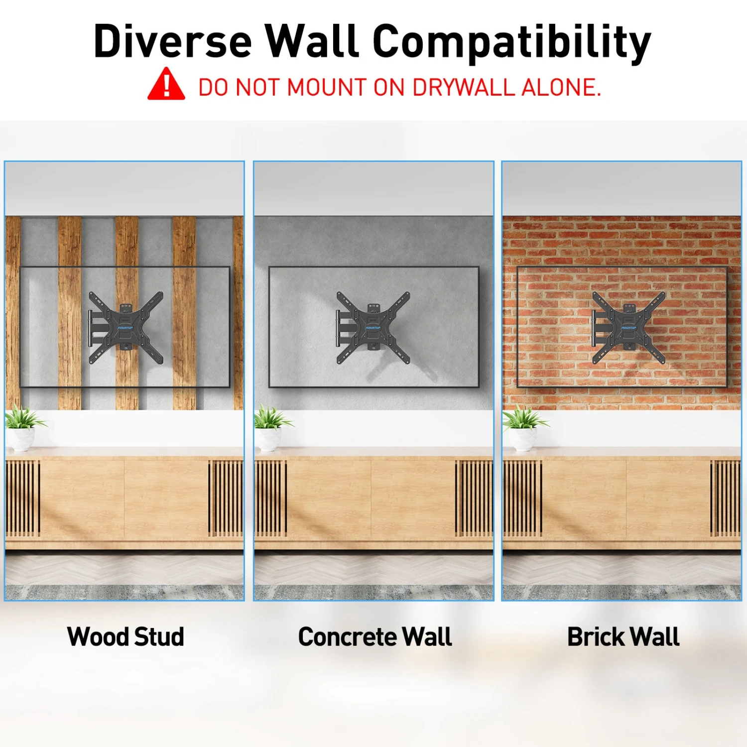 <Easy and Quick Installation>Our wall mount is easy to install and comes with a clear step-by-step installation instruction, bubble level, and necessary standard mounting kit. The concrete anchors will be sent per request. NOTE: DO NOT install into drywall alone.