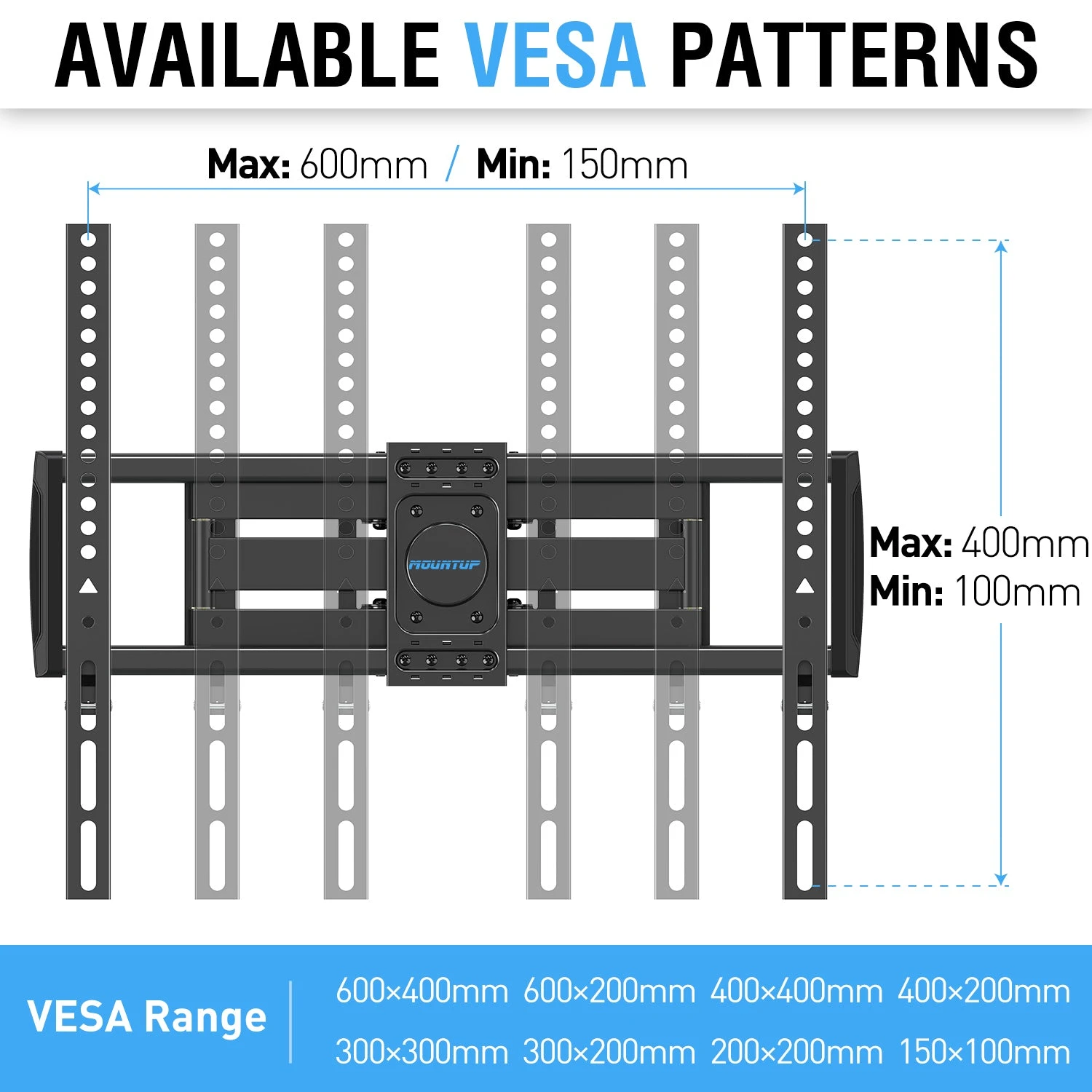 <Universal TV Wall Mount>This wall mount fits most 37,42,46,50,55,60,65,70,75,80 inch TVs with VESA from 150x100mm to 600x400mm up to 100 lbs./45kg, fitting 16″ wood studs spacing. Please check TV weight, VESA, wood studs spacing and input access before purchase. Search B08XYSBPC5 for YD3005 if you have 24″ wood studs.