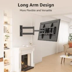 <Full motion TV wall mount>Articulating wall mount tilts TV up 5° and down 13°, swivels TV left and right 45° for maximum viewing flexibility, extends 15.8” and retracts back 3” for smooth movement and space-saving.
