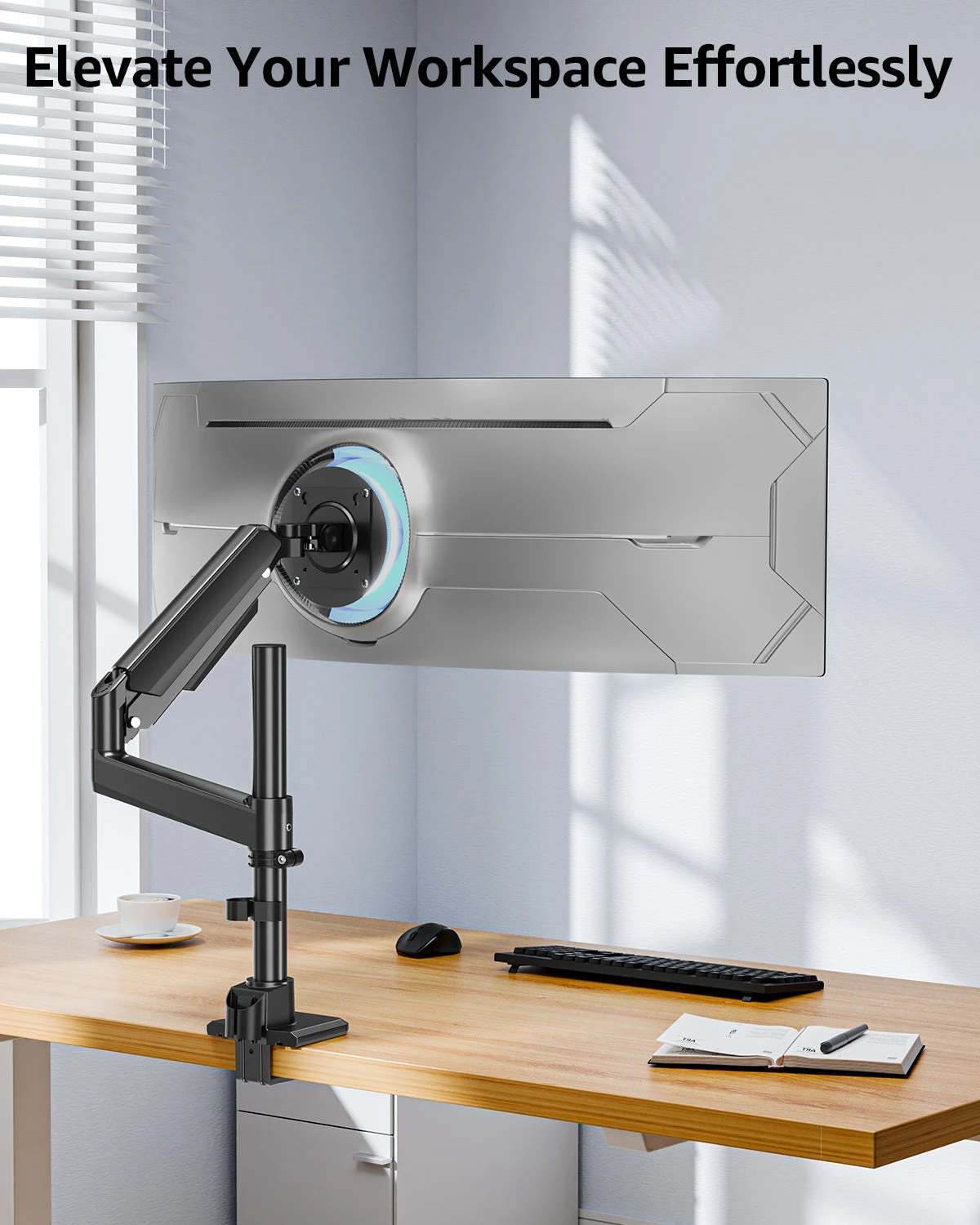 - Premium Build Quality: The ultrawide monitor mount with a gas spring system tested 20,000 times to ensure long-lasting performance for your workspace. Designed with heavy-duty steel and a smooth gas spring system, this monitor stand doesn’t just look sleek—it performs for years. Every adjustment feels butery smooth, proving that durability and design really can go hand in hand.