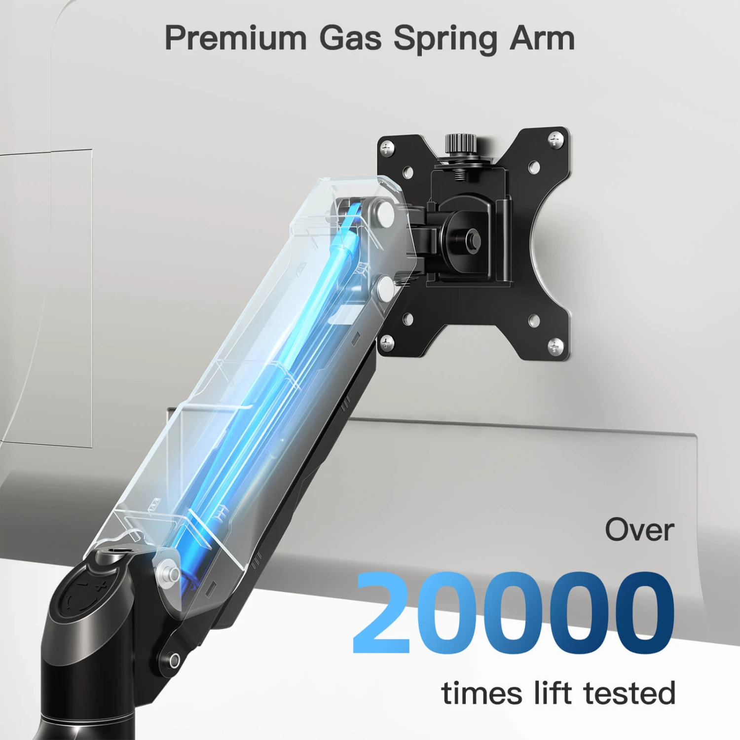 <Durable & Tested for Longevity>Built to last, the gas spring monitor stand has been tested for over 2,000 lifts to ensure long-lasting durability. Enjoy peace of mind knowing your long monitor stand will securely support your monitor, even with heavy daily use.
