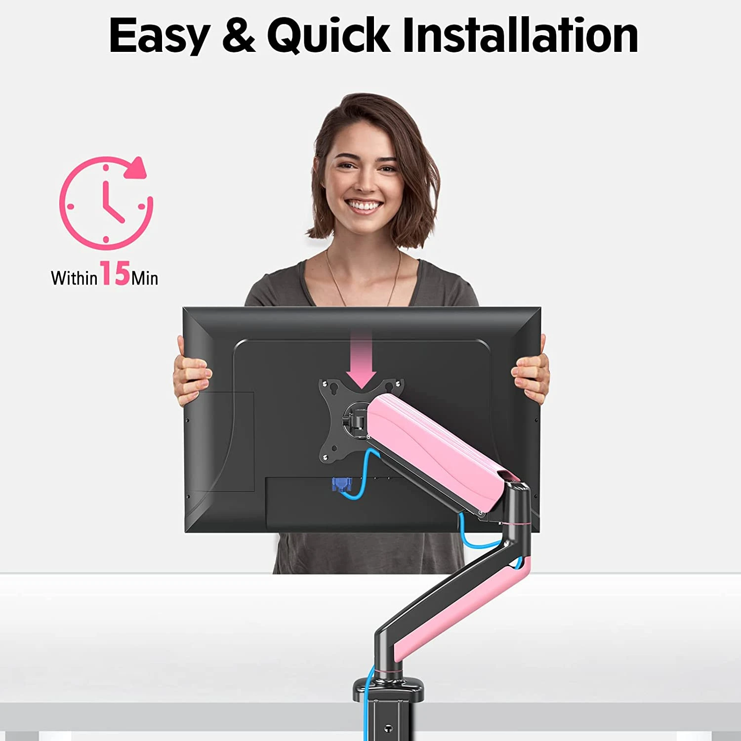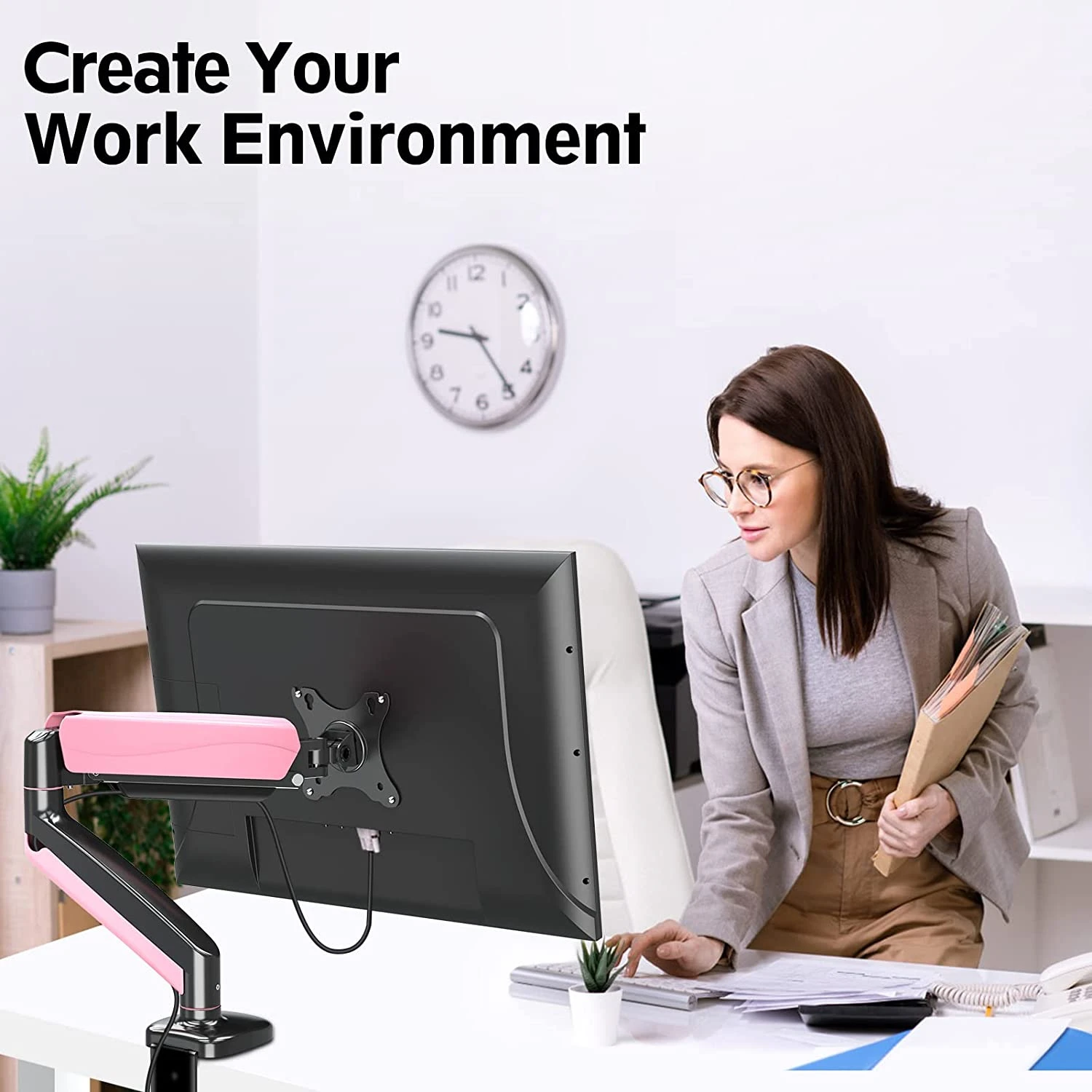 <Free Up Your Desk Space>Heavy-duty single monitor arm with cable management, hide sore eyes wire clutter, create a clean work environment! Small footprint, save more room on your desk to do other work, improve your work efficiency.