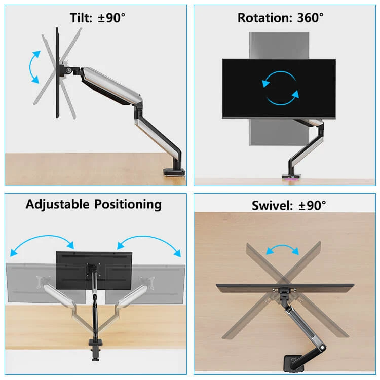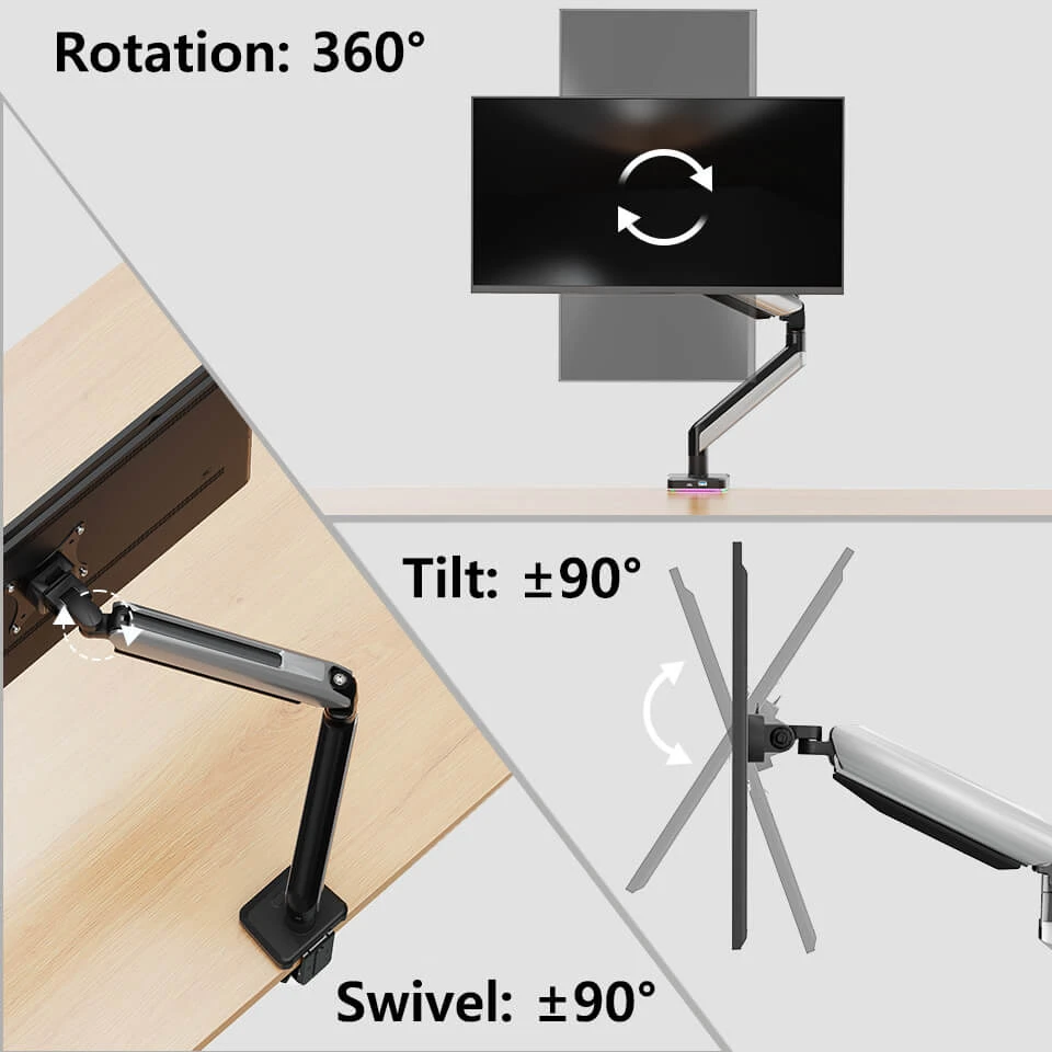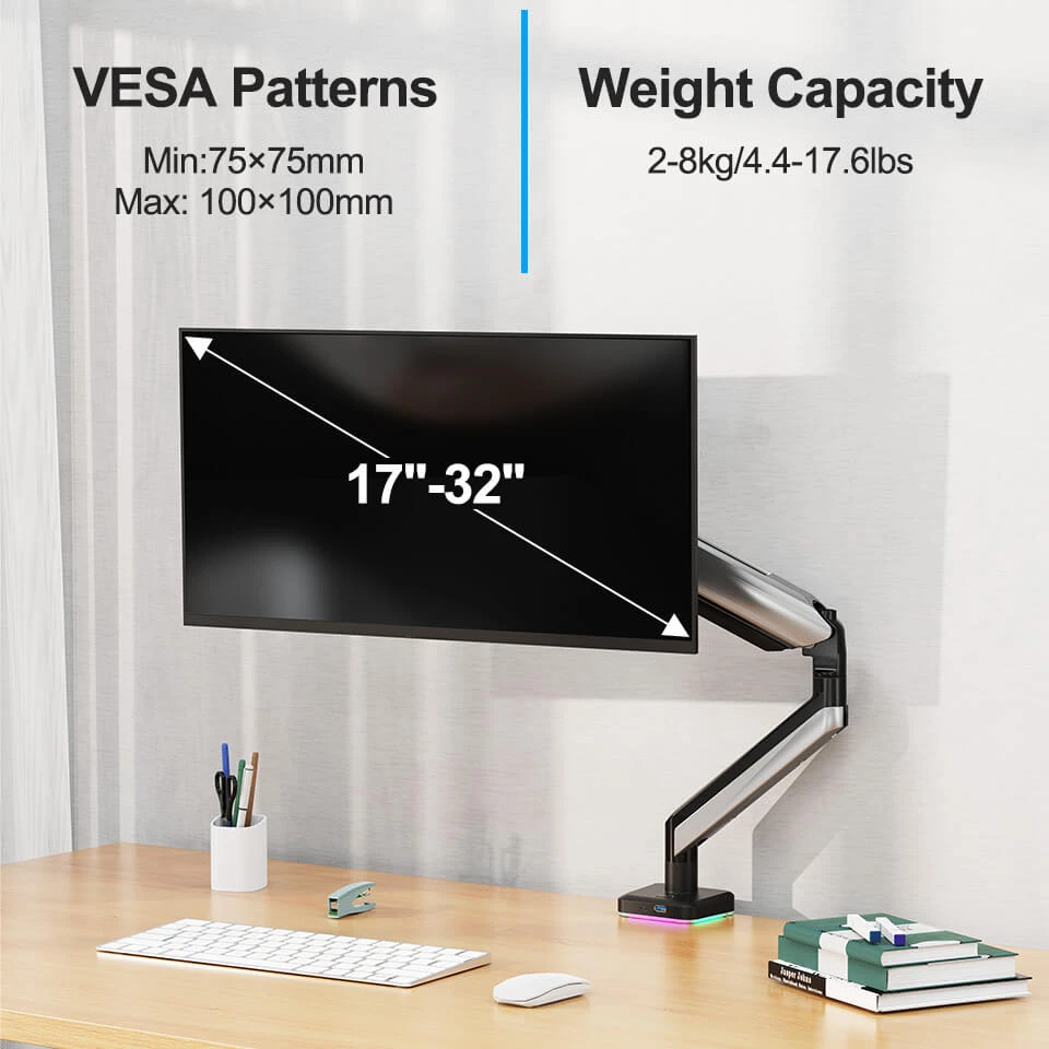 Single Monitor Desk Mount For 17″- 32″ Monitors With Ambient RGB Light MUA8009