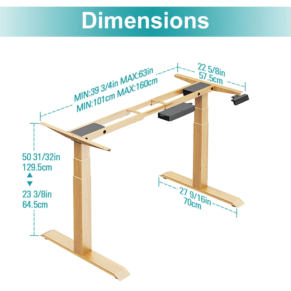 Standing Desk Frame Dual Motor Electric Height Adjustable Desk Legs Oak MUD25