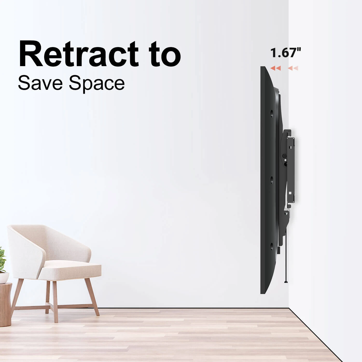 <Tilting TV wall mount with low profile>Another advantage of a tilting TV mount is its low profile. This wall mount holds your TV 1.67” closer to the wall without using any tools. When you are not watching the TV, simply pull it to the wall to save space for a sleek look.Â