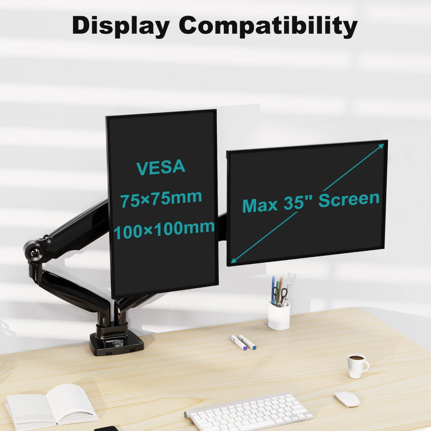 <Upgraded Ultrawide Dual Monitor Mount>Fit two larger flat/curved computer screens up to 35″ with VESA 75x75mm or 100x100mm, heavy duty monitor stand hold max 26.4lbs. Compatible with ASUS, Acer, Samsung, LG, HP, AOC, BenQ, MSI, Dell, Lenovo, etc., including but not limited to 17-35 inch screen.