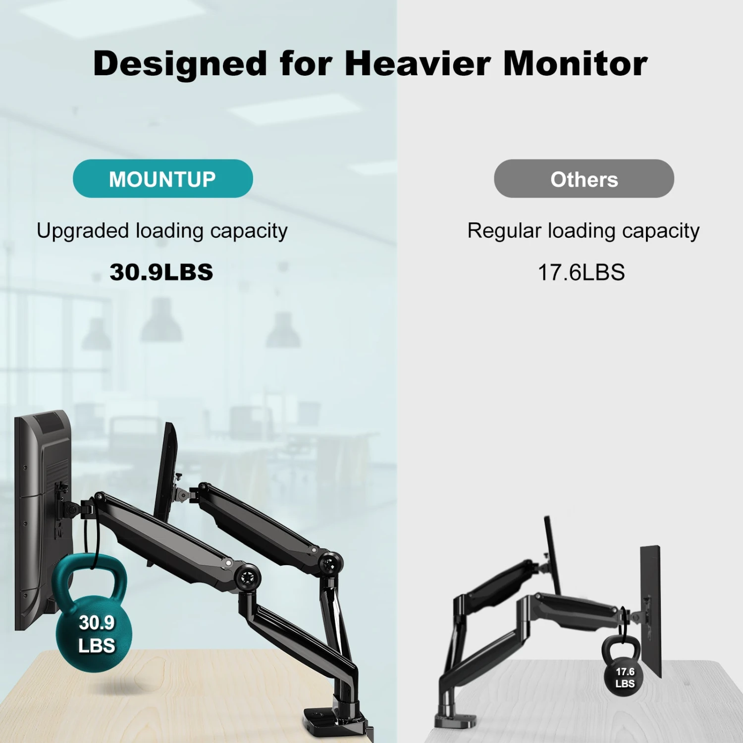 <Sturdy Construction>Built with upgrade material, our heavy-duty monitor desk mounts provide stable and secure holding for your setup.