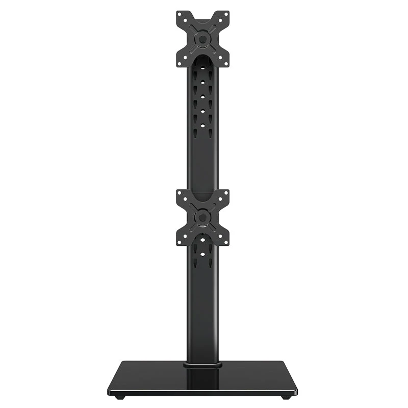 <Articulation & Height Adjustment>The double monitor stand comes with a sturdy free-standing base which makes it conveniently portable. The monitors can be tilted 30° up or down, swiveled 45° right or left, and rotated 360° for maximum viewing comfort. 11 different positions and a total of 12.44’’ of height movement along the pole are perfect for the monitor it was needed for.