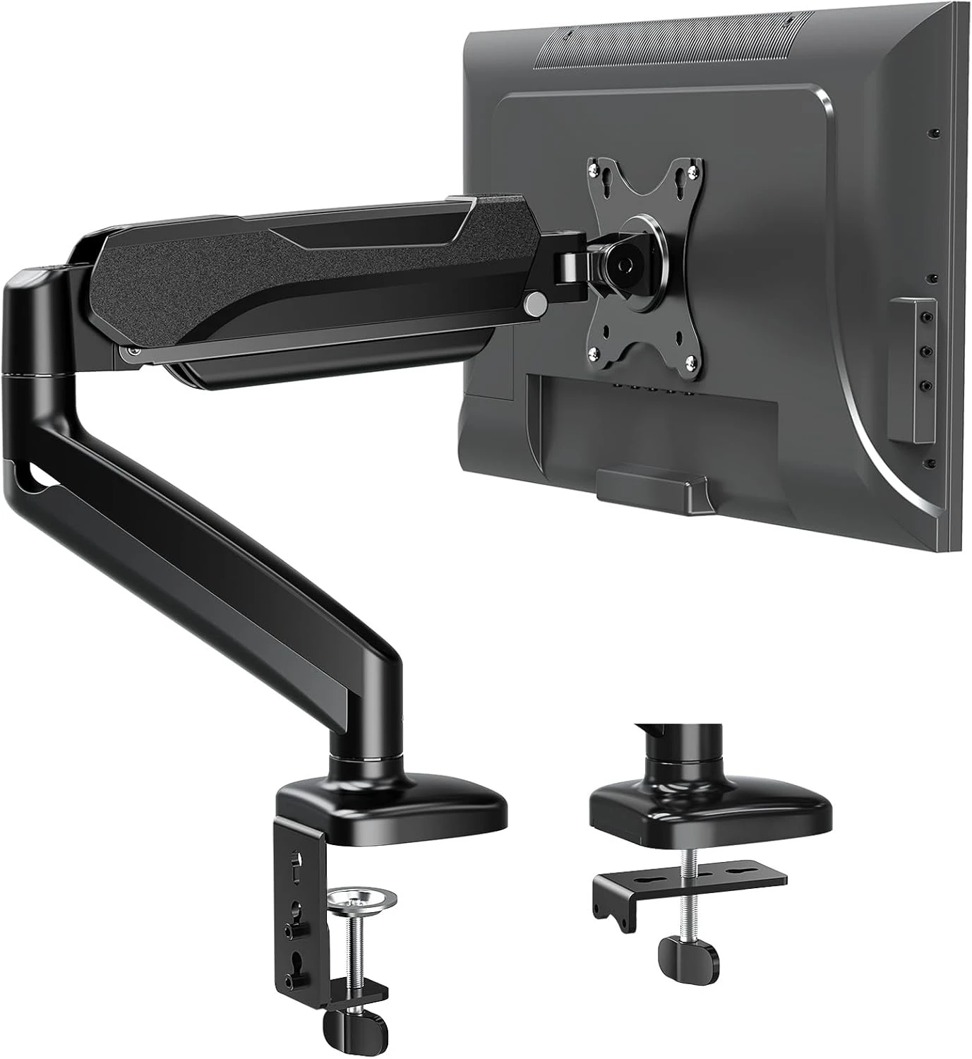 <Sturdy Construction>The stable gas spring and clamp/grommet base are strong and durable enough to ensure the safety and security of your single monitor setup.